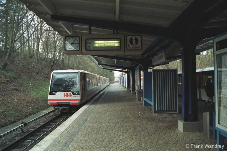 Der Haltepunkt Schmalenbek. Hier findet die Zugbegegnung auf der eingleisigen Walddörferbahn statt.